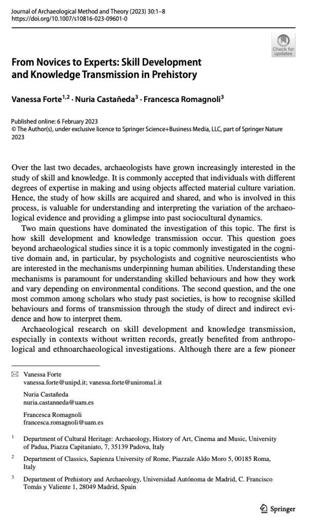 Forte V., Castaneda N., Romagnoli F. 2023. From Novices to Experts: Skill Development and Knowledge Transmission in Prehistory. Journal of Archaeological Method and Theory.